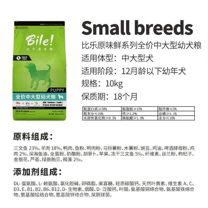 Bile original low-sensitive Valley-free medium large puppies natural dog food mutton fish chicken freeze-dried 10kg