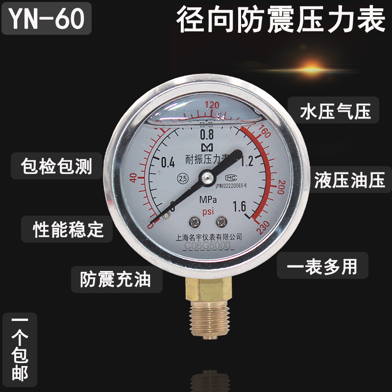YN-60 shockproof pressure gauge shockproof water pressure gauge stainless steel table vacuum negative pressure gauge