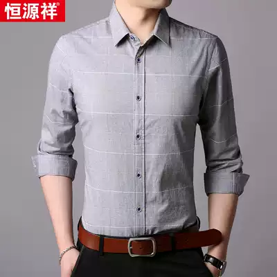 Hengyuanxiang cotton plaid shirt men long sleeve autumn casual Korean style shirt slim thin youth shirt trend