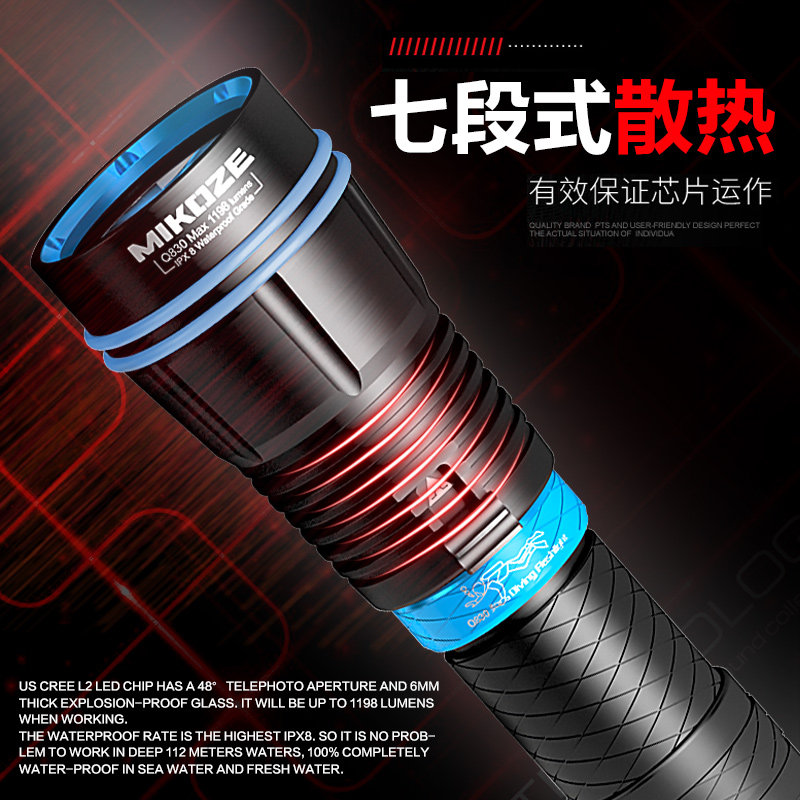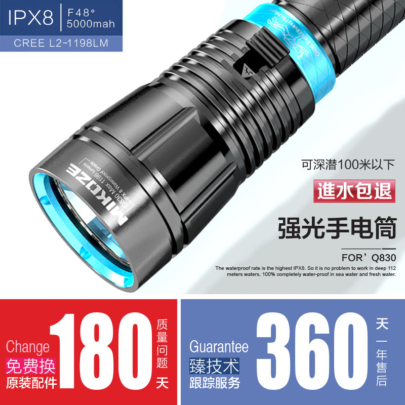 MIKOZE professional diving strong light amphibious German original imported long-range light flashlight