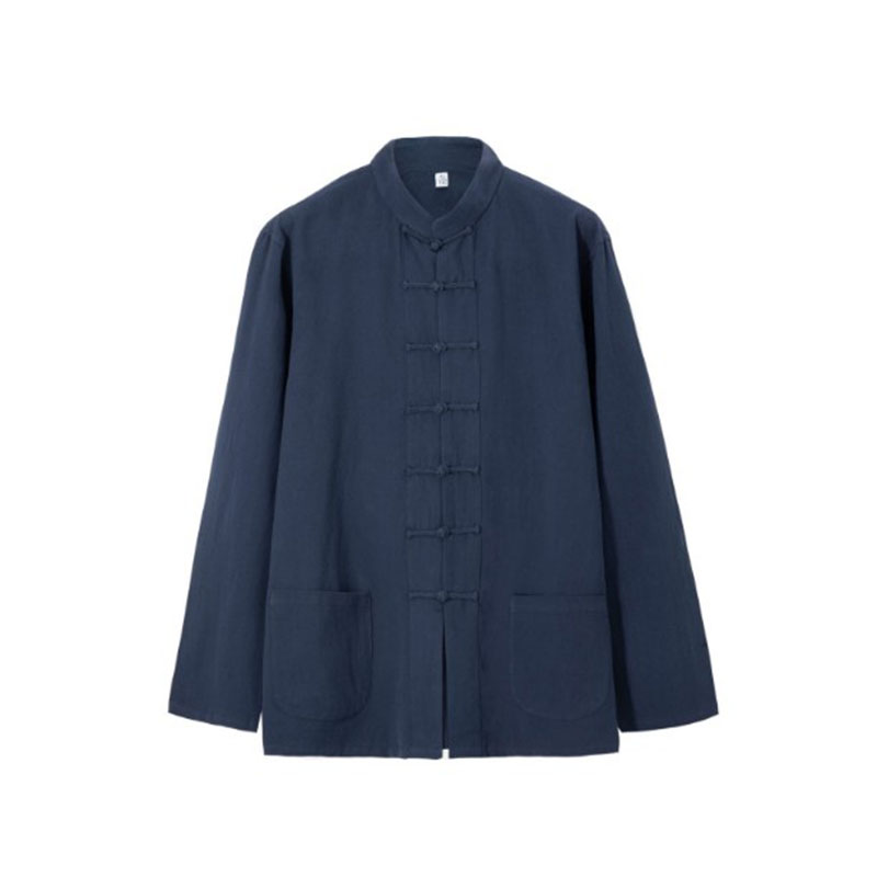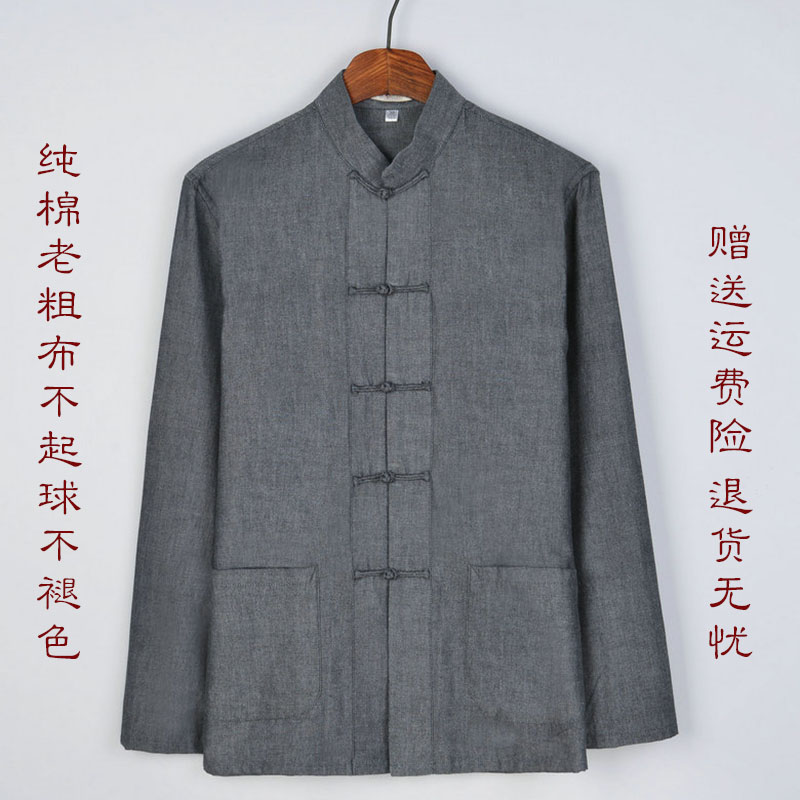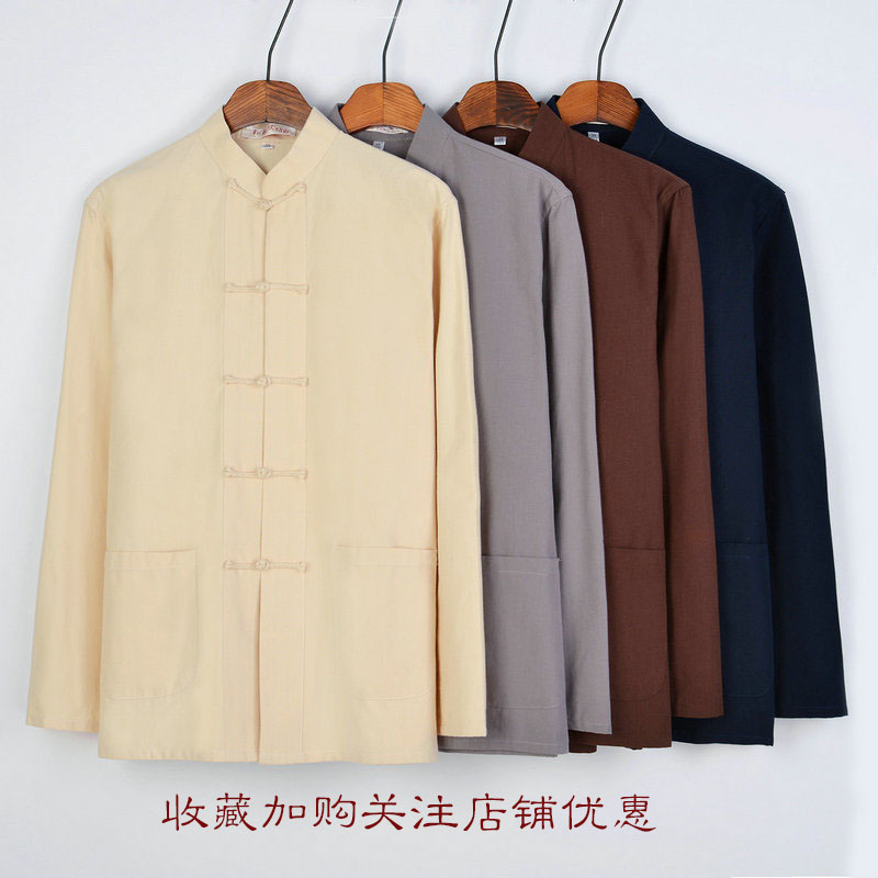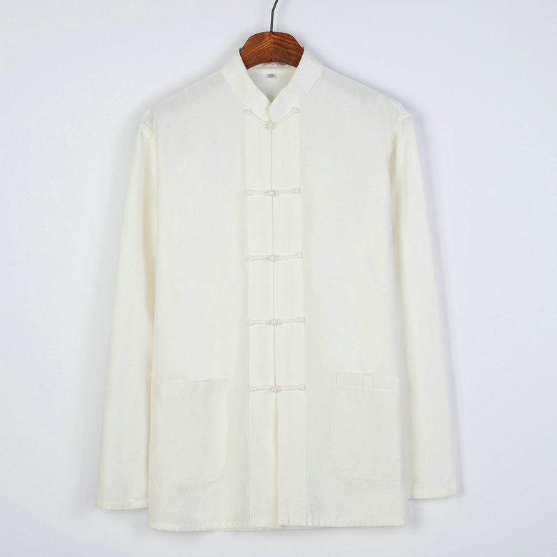 Pure Cotton Old Coarse Cloth Men's Tang Dress Long Sleeves Spring Autumn China Wind White Chinese Style Shirt Male Retro Meditation Mantra