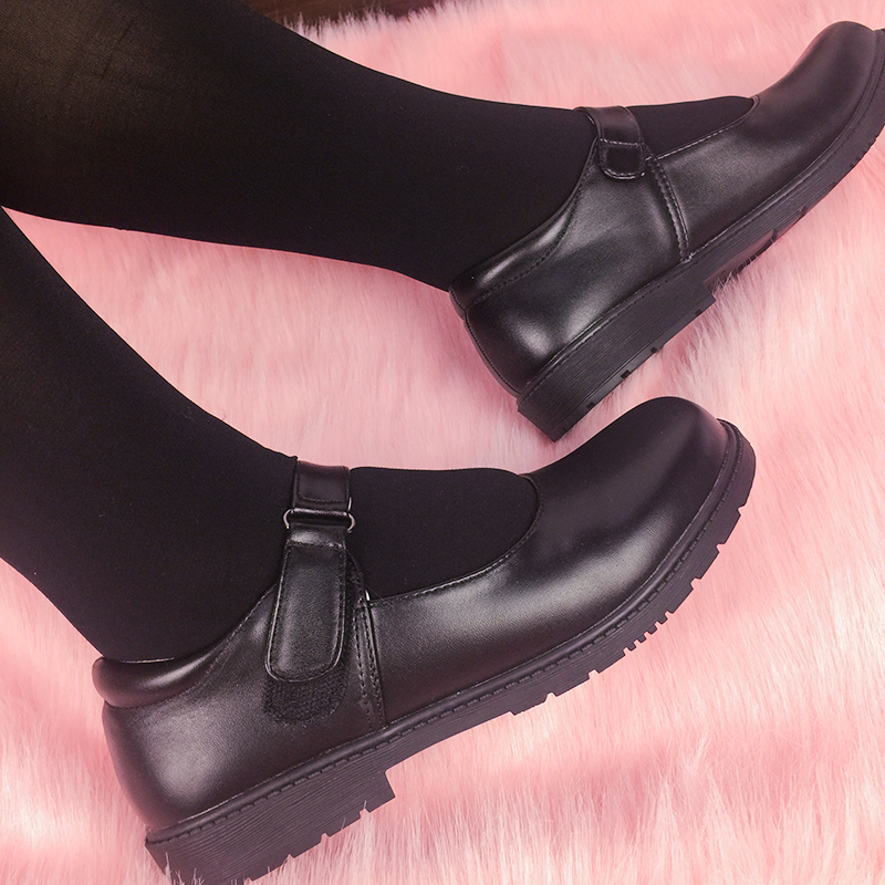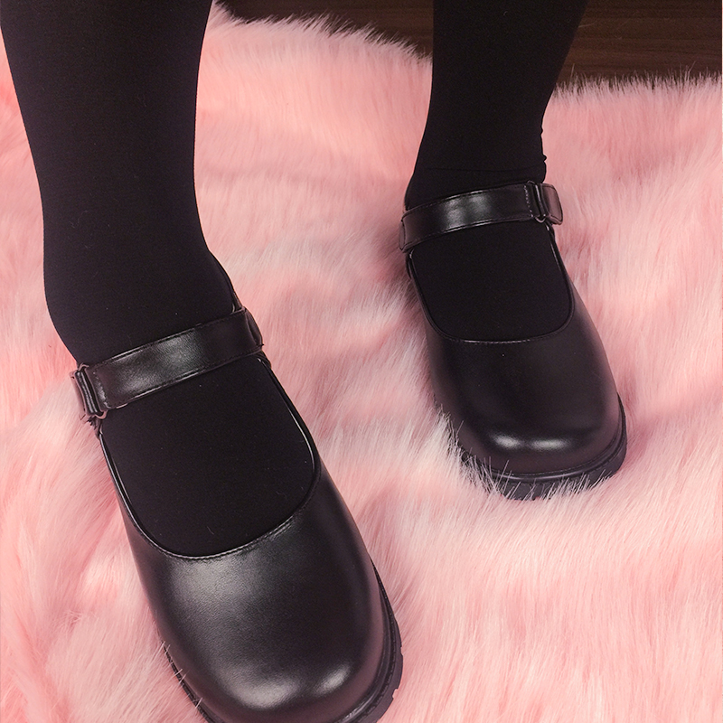 Day-of-the-day pseudo-pussy custard with leather shoes Pseudo Pussy Accessories Women's Uniform Shoes College Wind Cos Black Round Head Jk Single Shoes