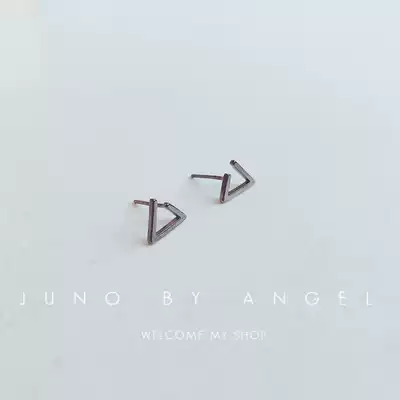 2021 New S925 sterling silver triangle geometric gun black ear needle female Korean version simple student couple short hair earrings