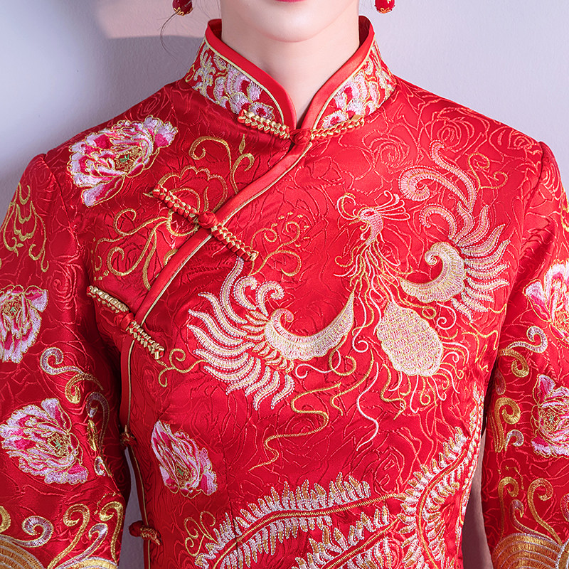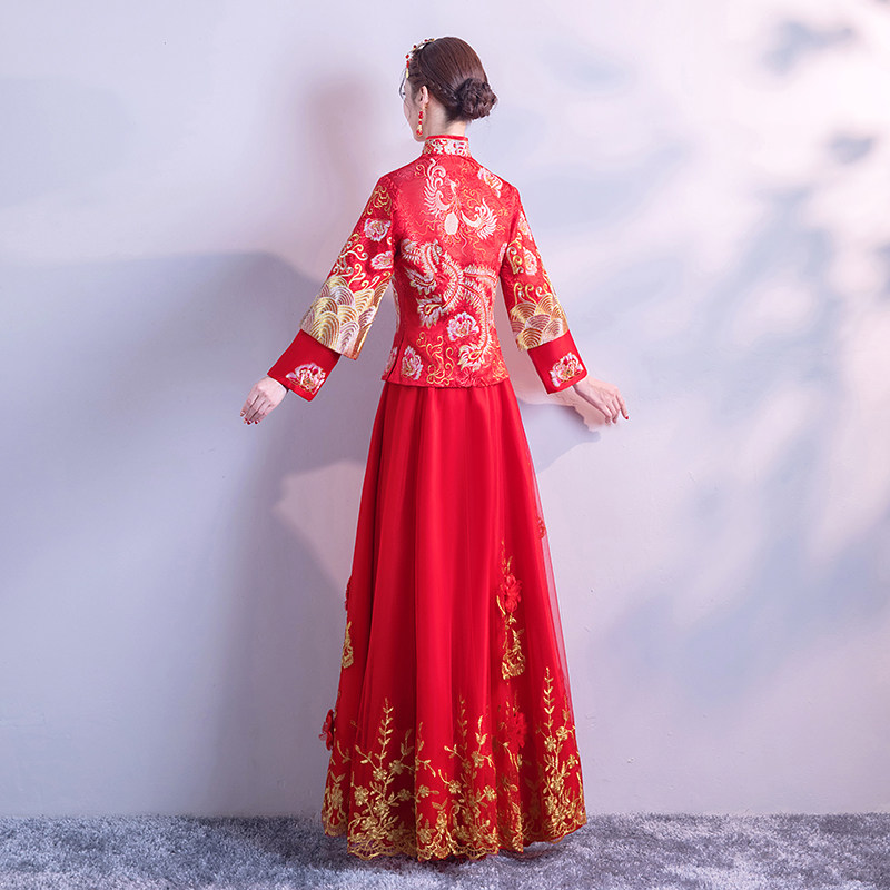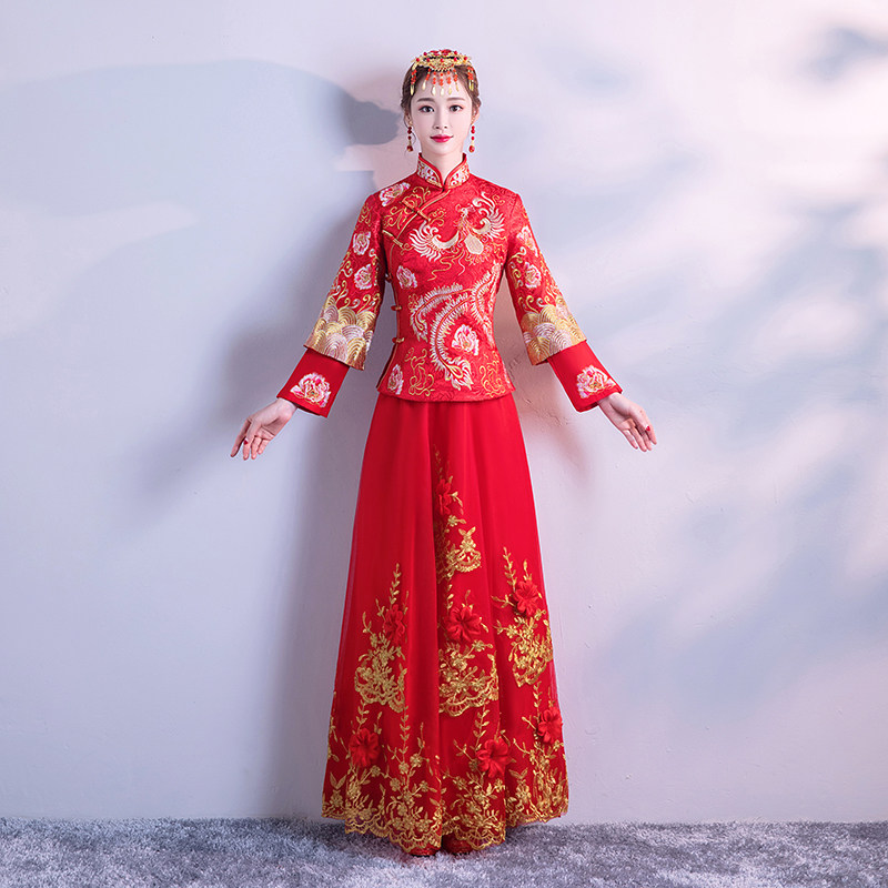 Xiuhe dress 2021 new bridal toast dress Chinese wedding dress red ancient embroidered wo dress wedding dress show kimono