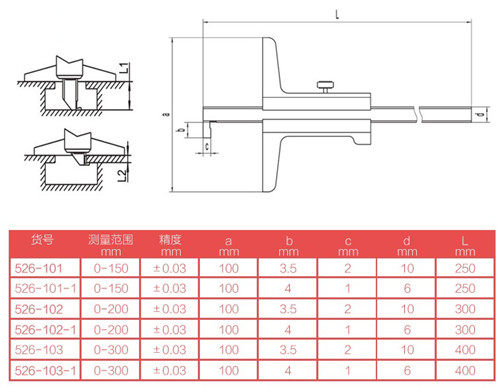 Single hook 0-150mm 526-101 Hook 2mm Single hook 0-200mm 526-102 Hook 2mm Single hook 0-300mm 526-103 Hook
