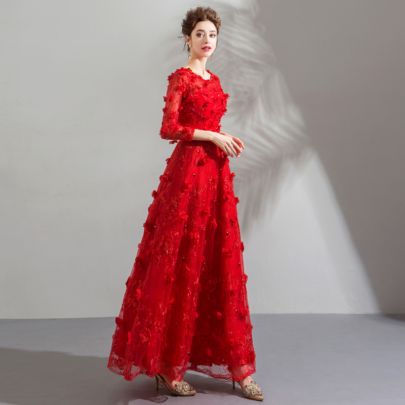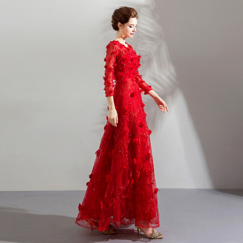 Angel's married fairy Fairy Van Red Petal Long Sleeve Bridal Dress Wedding Dress Wedding Toast
