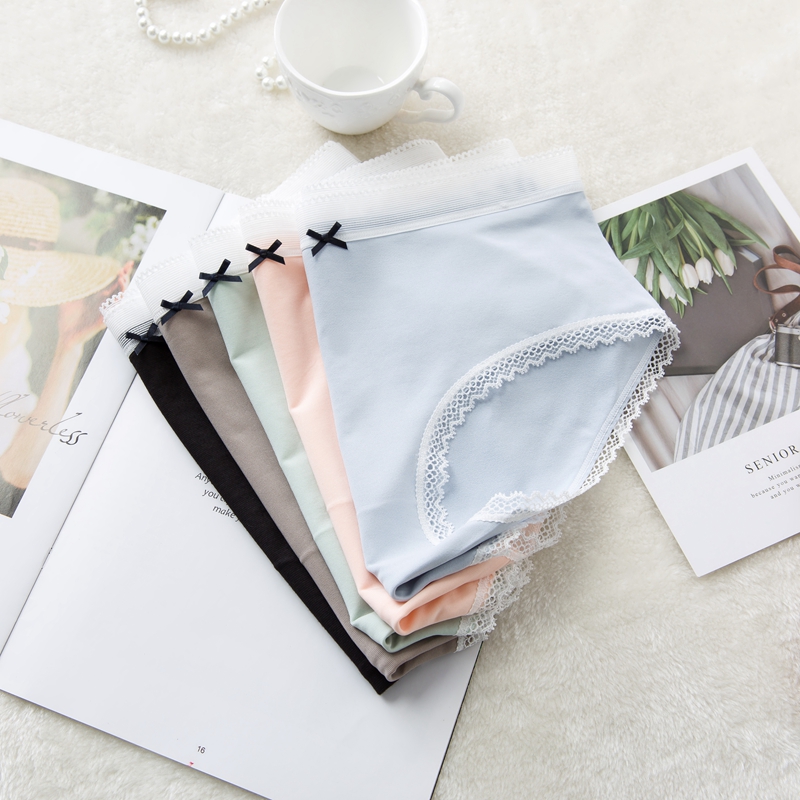 Simple mulberry silk lace comfortable mid-waist briefs wrap hips elastic breathable bow sweet seamless panties