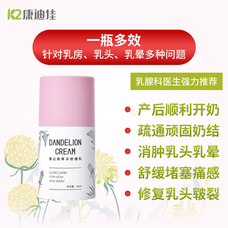 Kangdijia Dandelion herbal soothing cream Maternal nipple cream chapped milk Breastfeeding plugging milk swelling pain