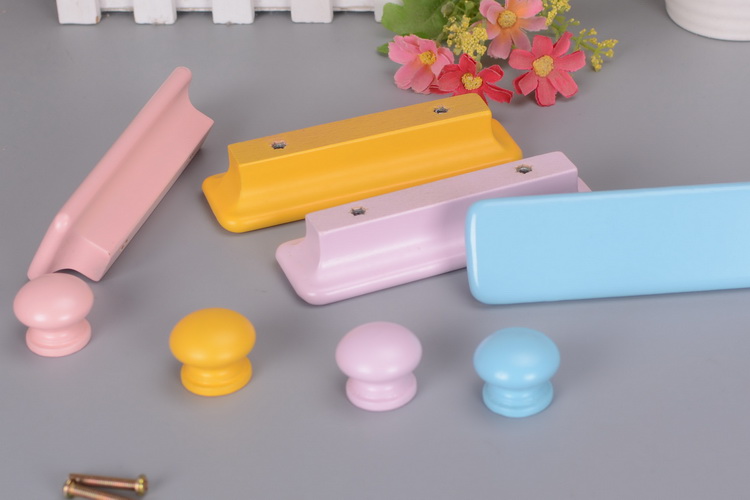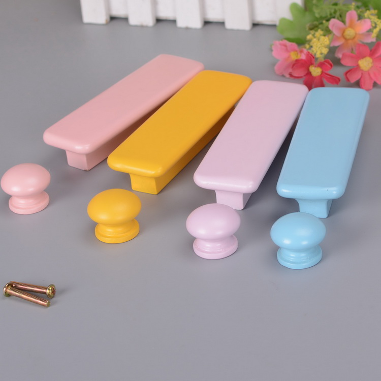 Solid Wood Door Handle Wardrobe Whole Cupboard Drawer handle cabinet Children's room Handle Cabinet Door Colored Handle Yellow Blue