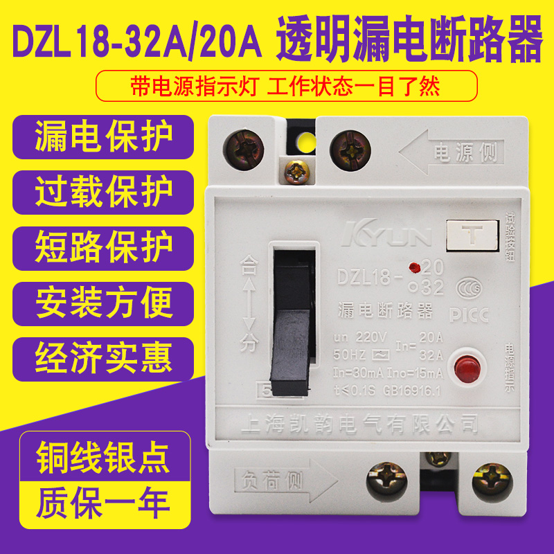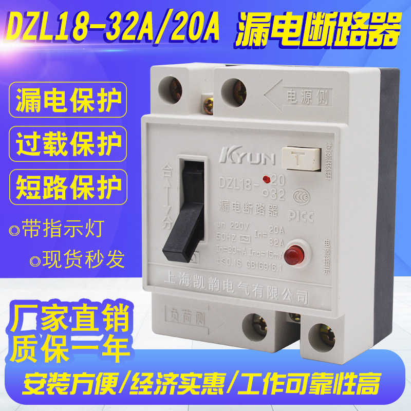 DZL18-20 DZL18-32 household leakage protector switch 2p circuit breaker 20A 32A with light