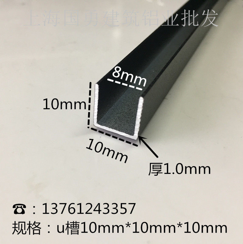 Aluminum alloy U-shaped slot black paint 10*10 inner 8mm glass card slot Wooden edging Expansion joint decorative strip
