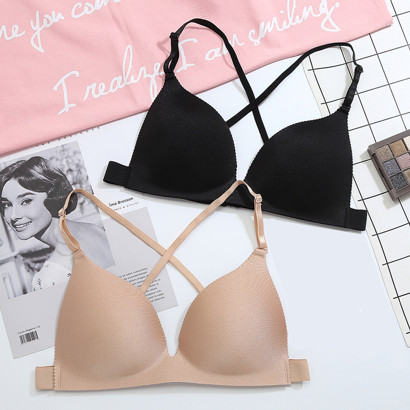 No rim beauty back bra Thin cup section incognito gathered underwear women's halter cross-hanging neck sexy thin belt small bra