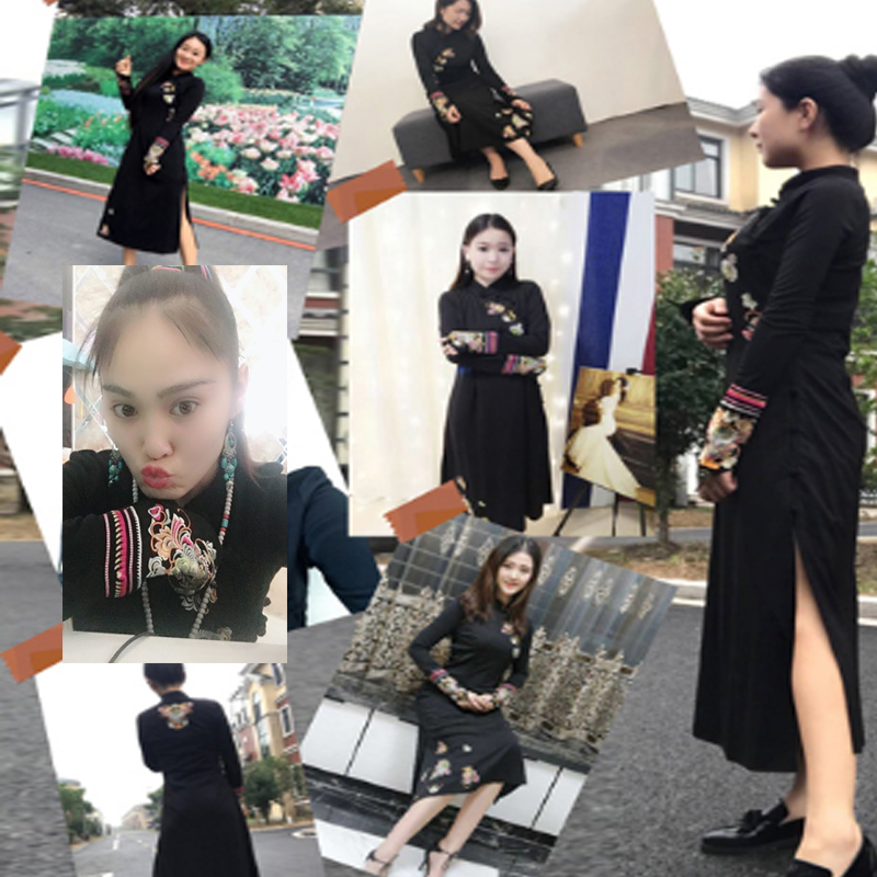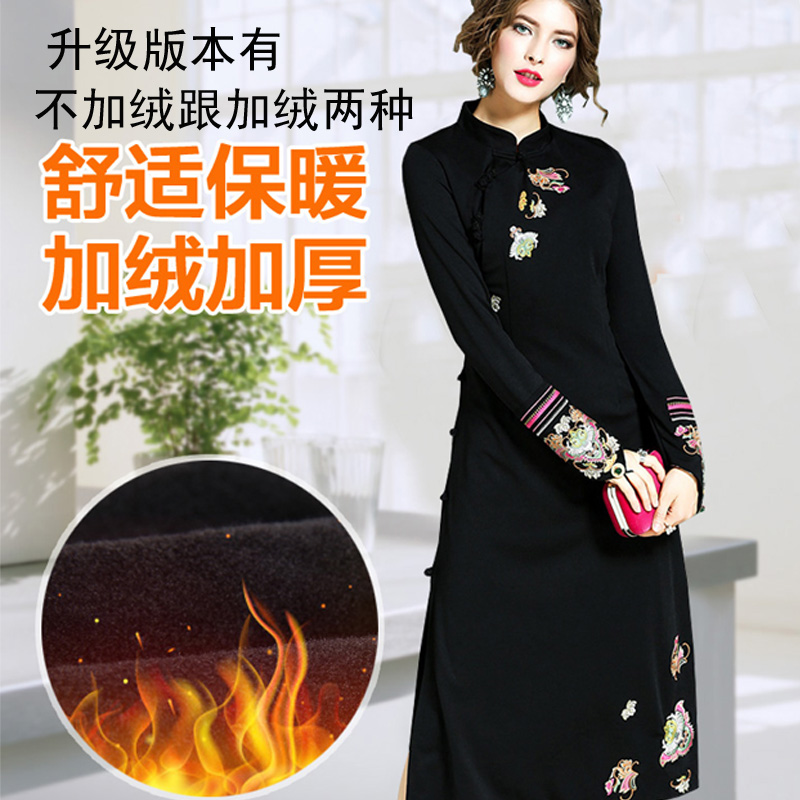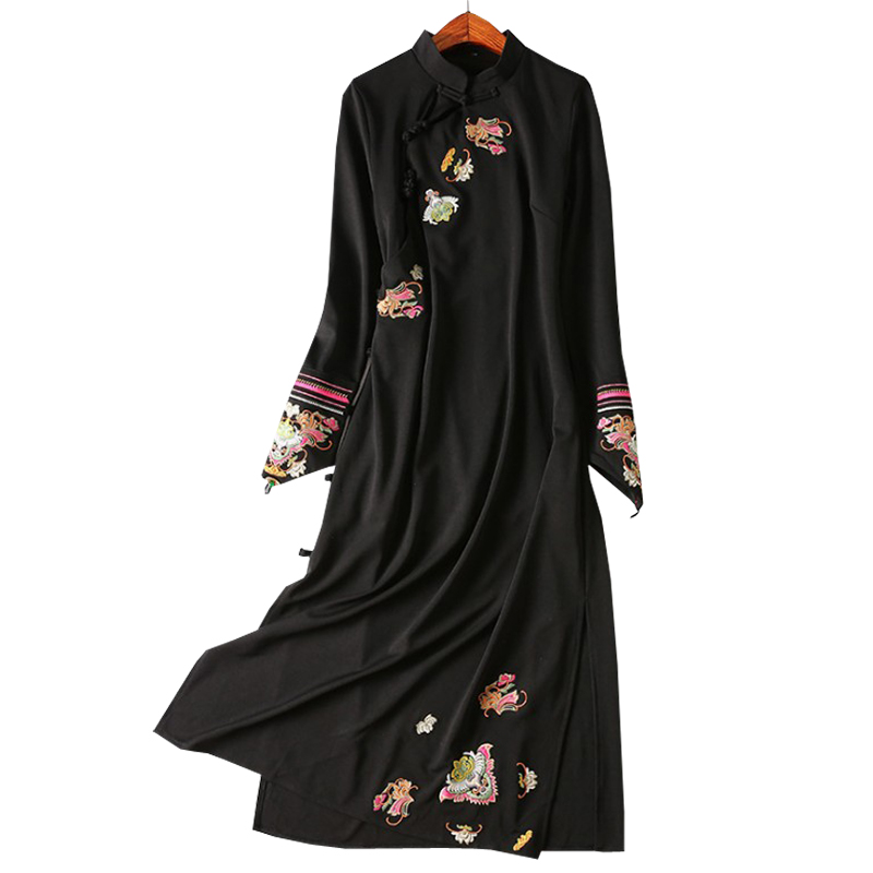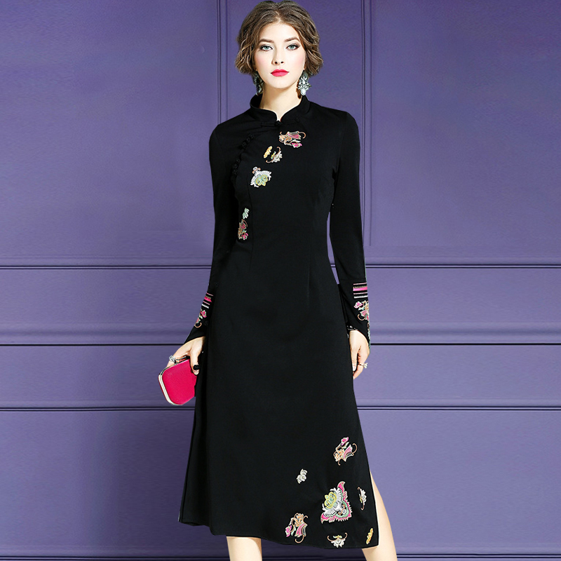 Retro embroidered qipao fall 2021 new female old Shanghai conspicuos in a long version of Chinese windy dress