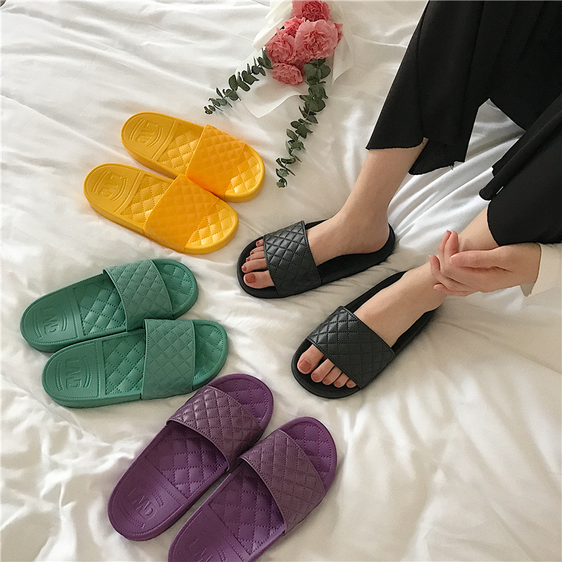 Web red diamond slippers female Xiao flat floor outdoor wear fashion in wind chic beach sandal shoes