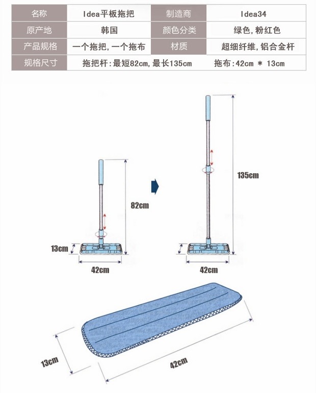 A piece of replacement cloth without packaging Universal two pieces of replacement cloth green aluminum rod mop (bring your own piece of mop) pink aluminum rod mop (bring your own piece of mop) blue aluminum rod mop (bring your own slice