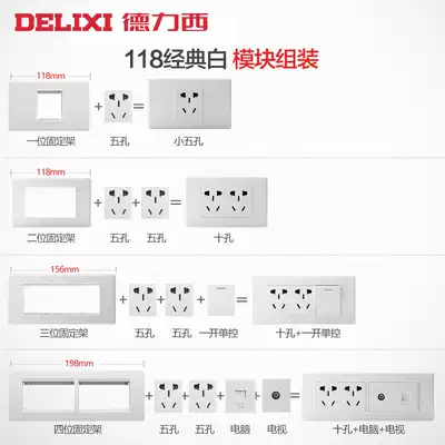 Delixi switch socket 118 type switch mode socket module panel connecting frame free combination One-stop matching