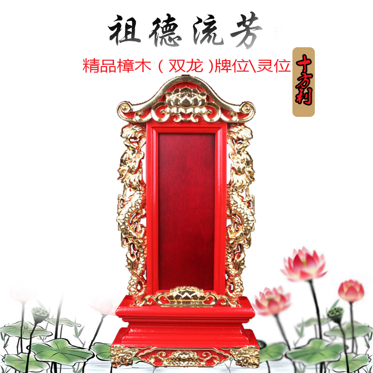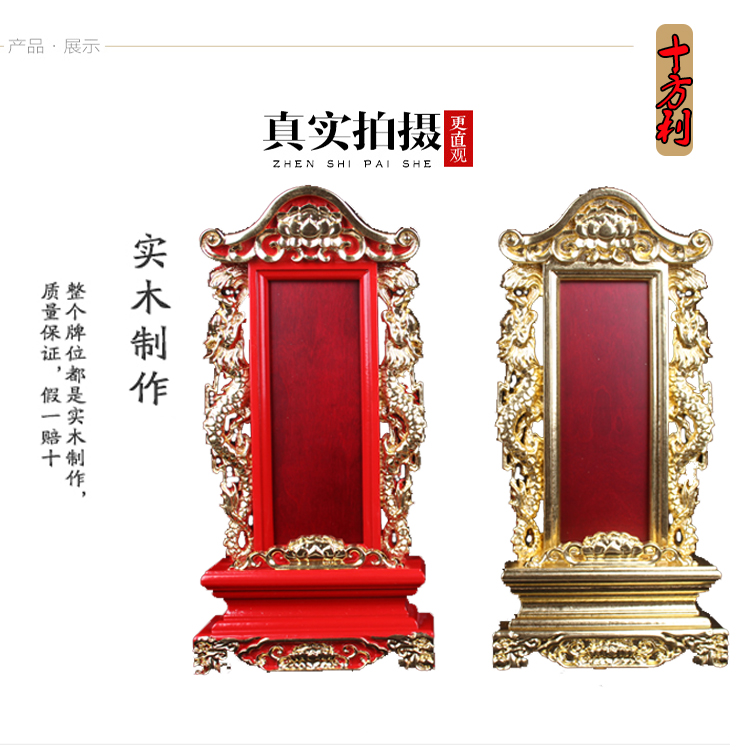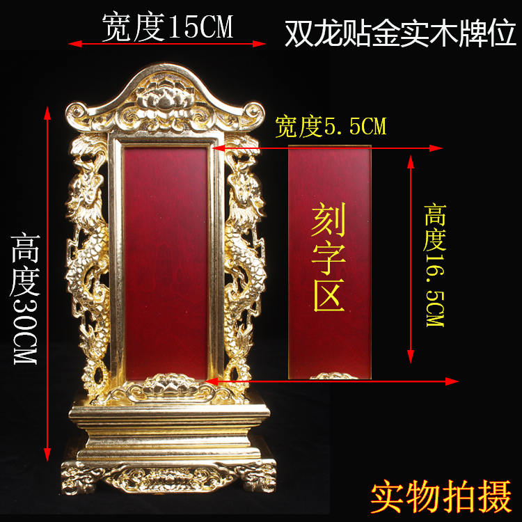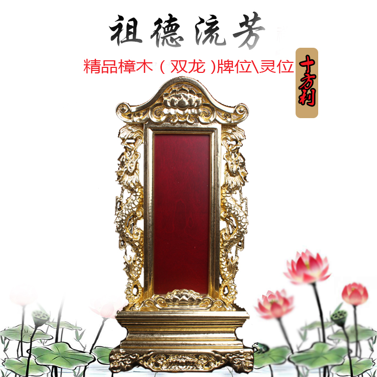 Buddha and Buddha tools, the inner hall of the Buddhist hall, the ancestor's spiritual bit, the double dragon paste gold for the day, the solid wood carving tablet