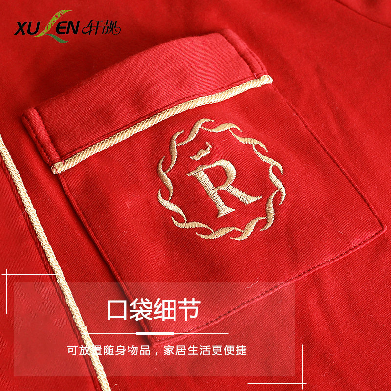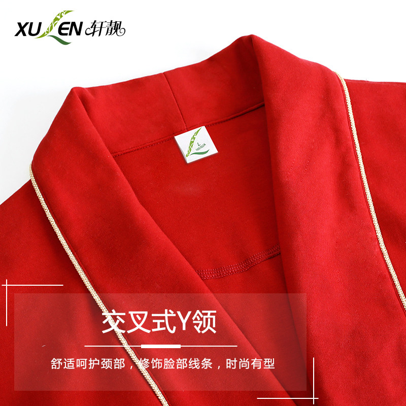 Spring and Autumn couple new wedding pajamas long sleeve cotton nightgown female sexy robe bride morning gown big red wedding suit