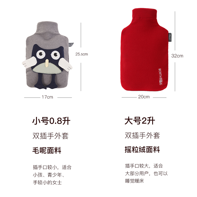 Owl cartoon hot water bag water injection explosion-proof double hand warm water bag PVC flushing large removable flannel