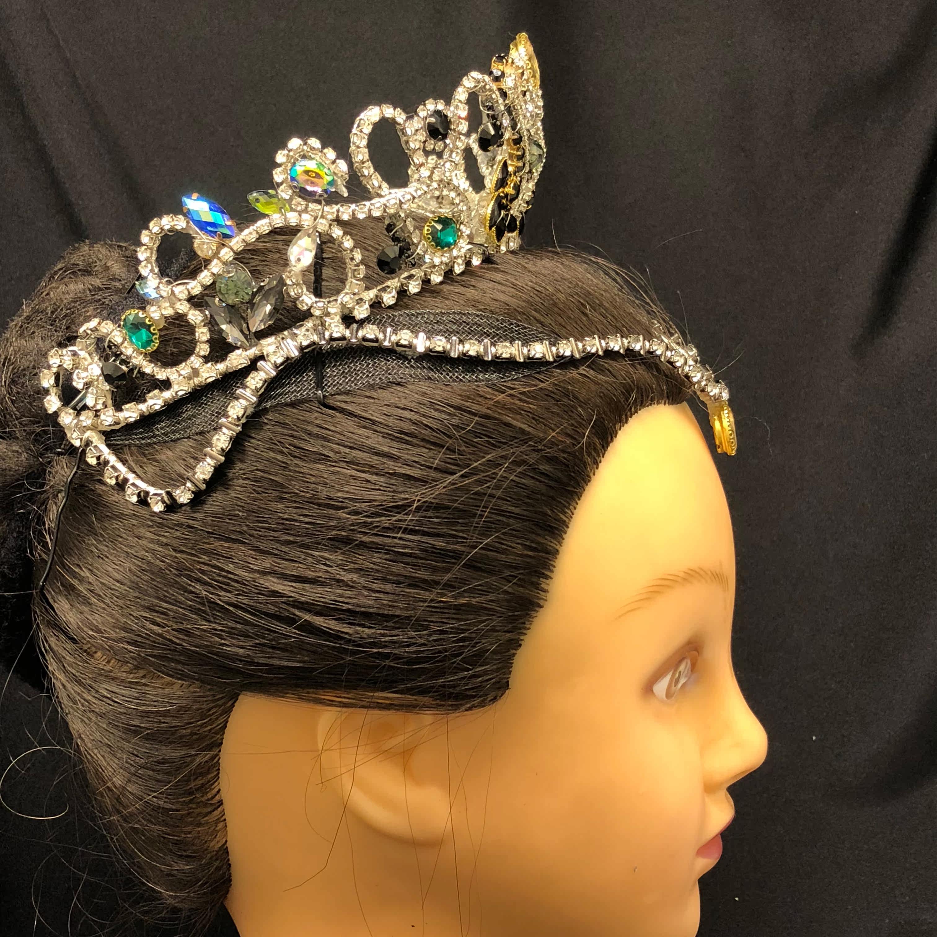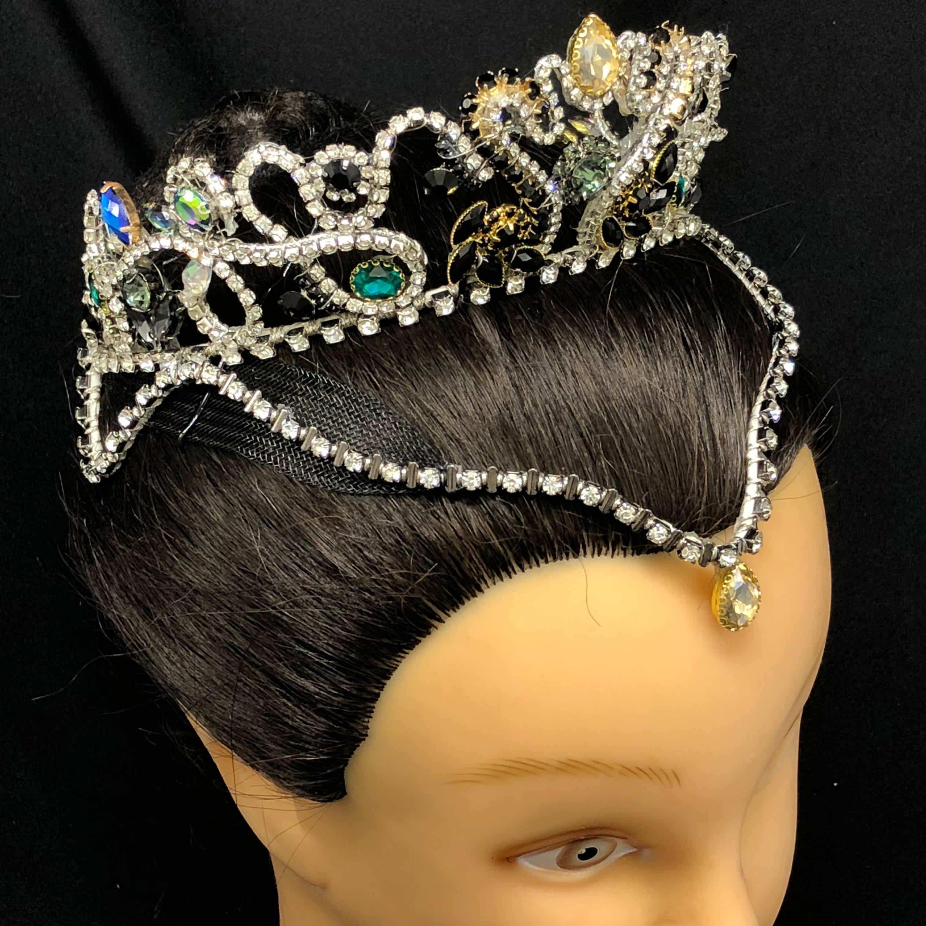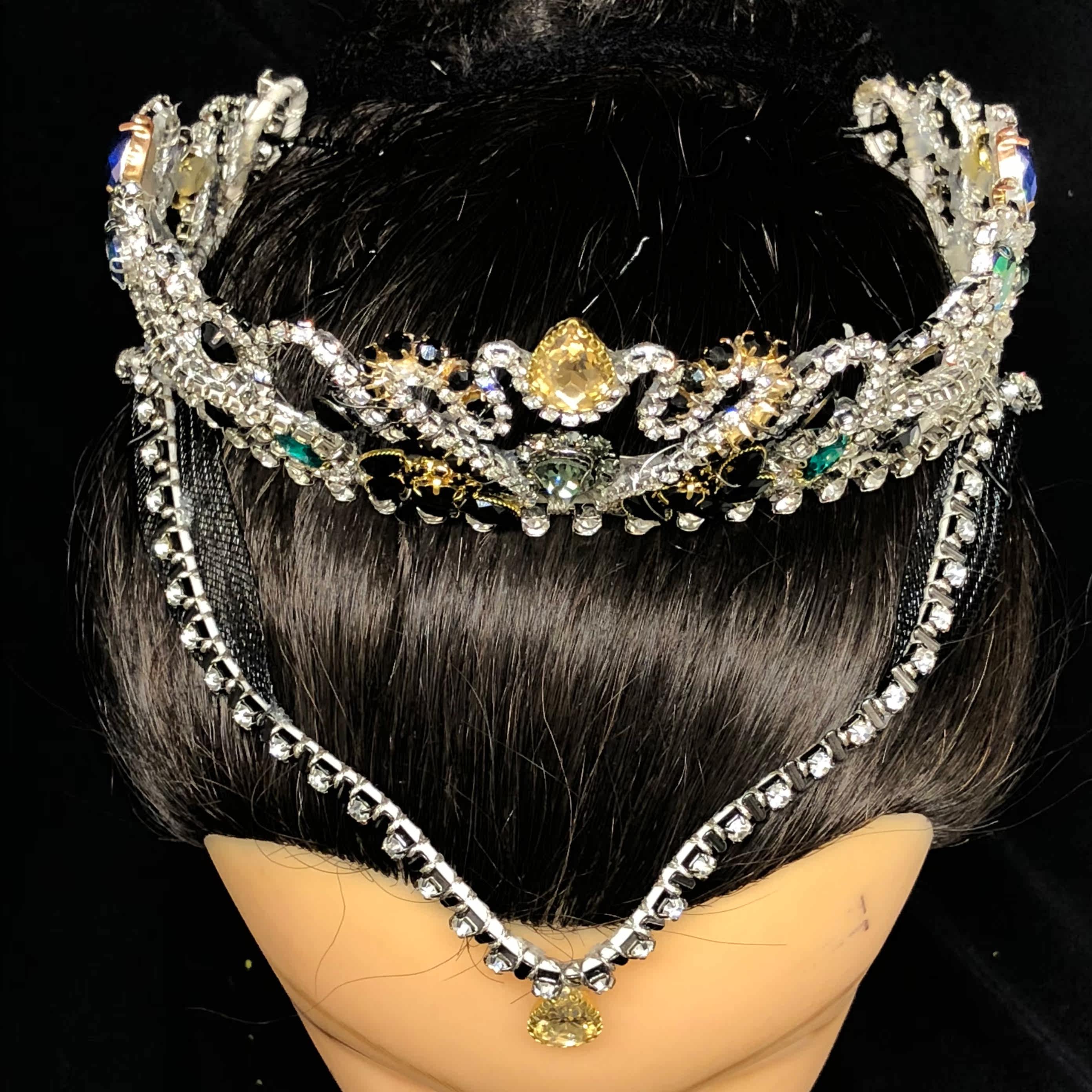 Sky Goose Lake Sky Three Heads Decorated with Artisanal Crown Professional Black Swan Ballet Competition Performance Racing Headwear Custom