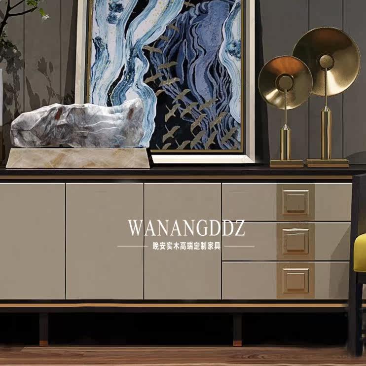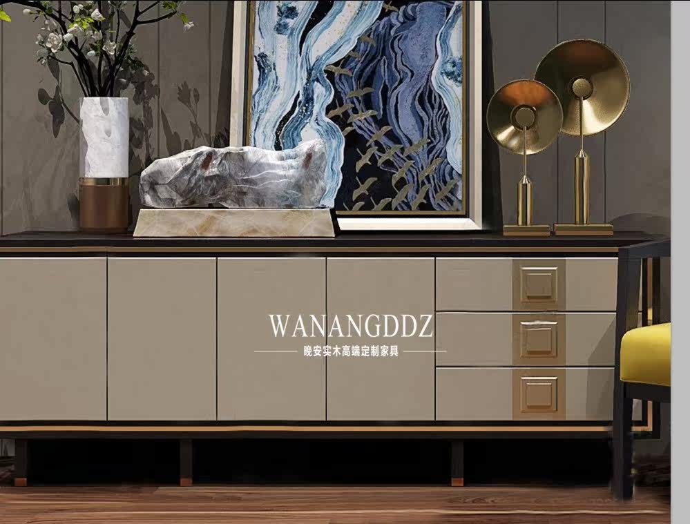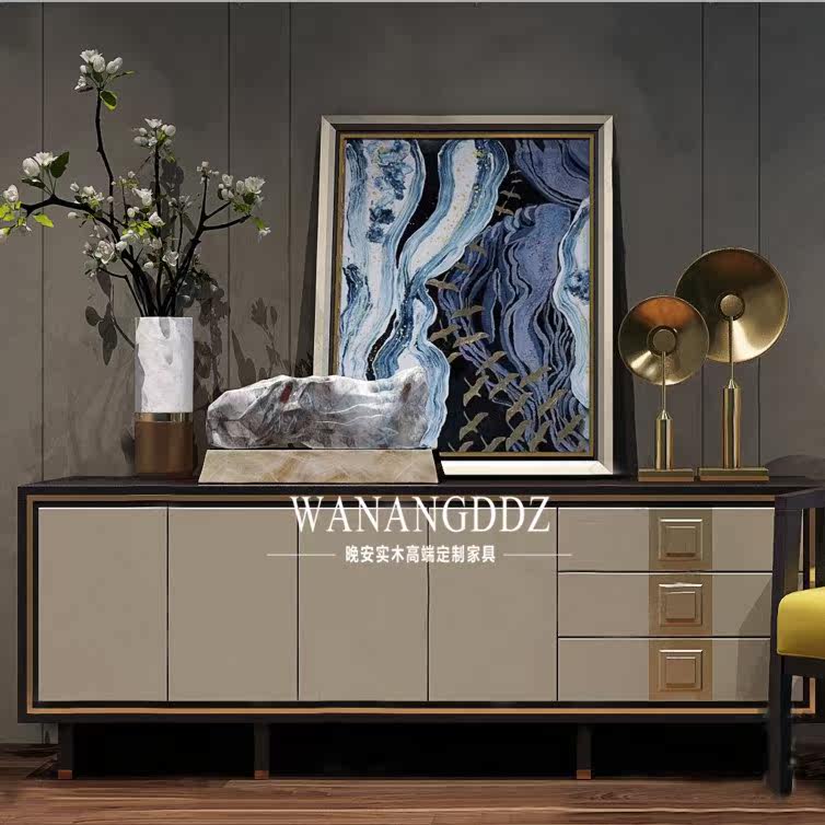 American Neoclassical Light Luxury TV Cabinet After Modern Simple Living Room Champagne Gold Decoration Cabinet Designer Xuanshut Cabinet