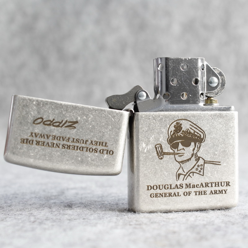 ZIPPO windproof lighter 121FB ancient silver single-sided etching military fan General MacArthur male gift