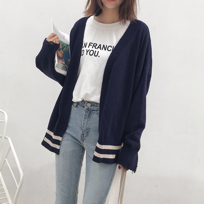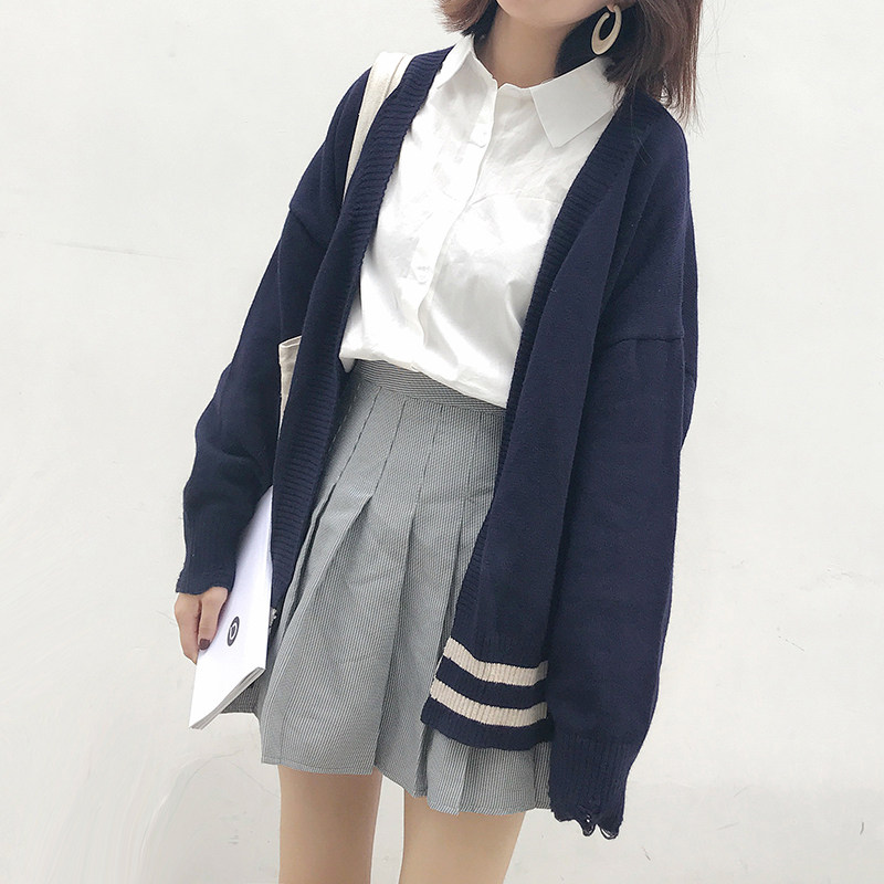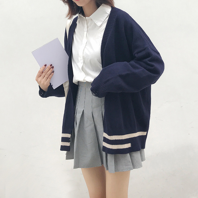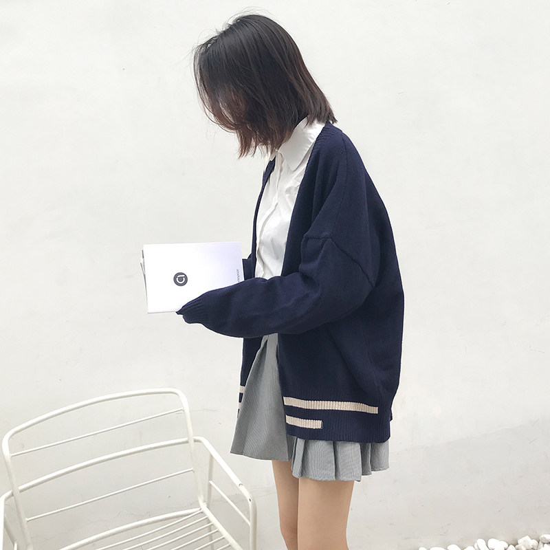 2023 autumn new women's clothing short section small preppy style blue sweater coat women's knitted cardigan top