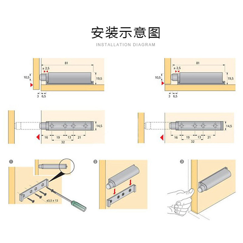 Free handle cabinet door bouncer press type Invisible door coat integral cabinet door touch bead magnetic touch spring switch