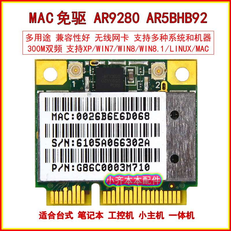 AR9280 AR5BHB92 Dual Frequency 5G 300M Notebook Wireless Network Card MAC Black Apple ROS UBNT