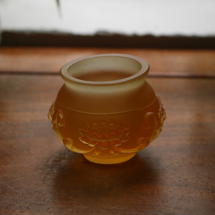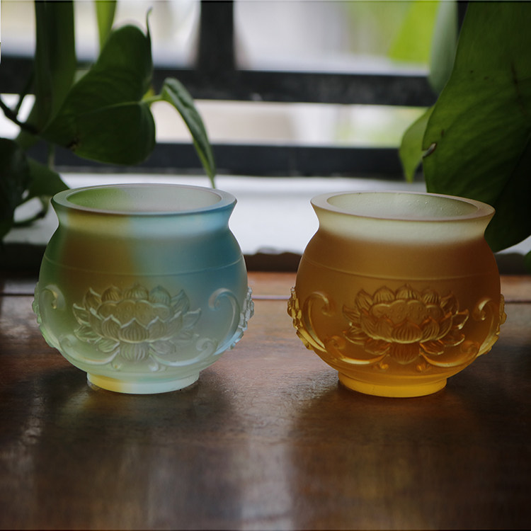 Zen Yue Buddhist Art Ancient Law Glass Lotus Tribute Cup Water Purification Cup Buddhist Holy Water Cup Tribute Cup Household Decorations