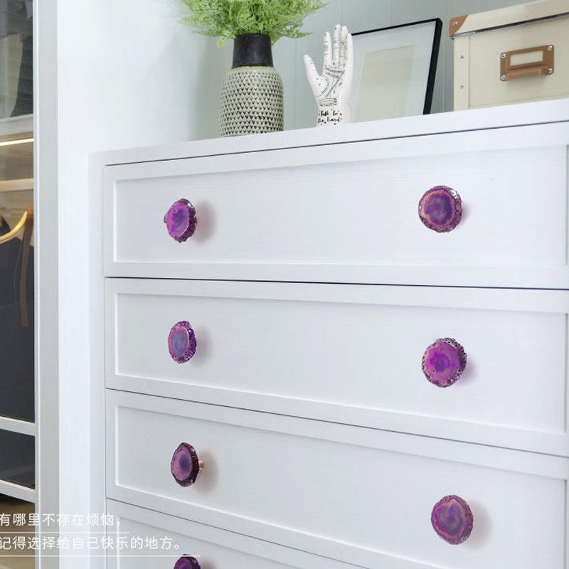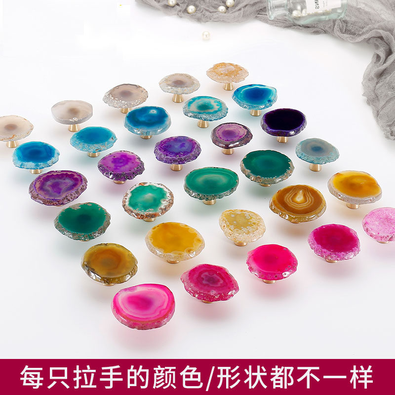 White Blue Green Pink Purple Yellow Color Agate Jade Handle Children Room Personality Cabinet Door Handle Single Hole Drawer Small Handle