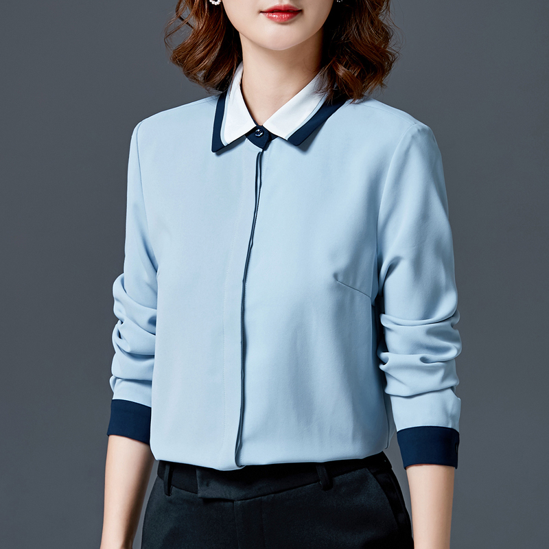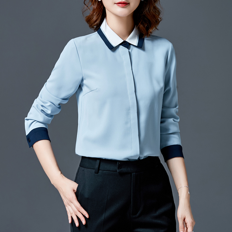 Blue chiffon shirt women's long-sleeved 2021 new work clothes top temperament spring clothes plus velvet shirt thickened warm
