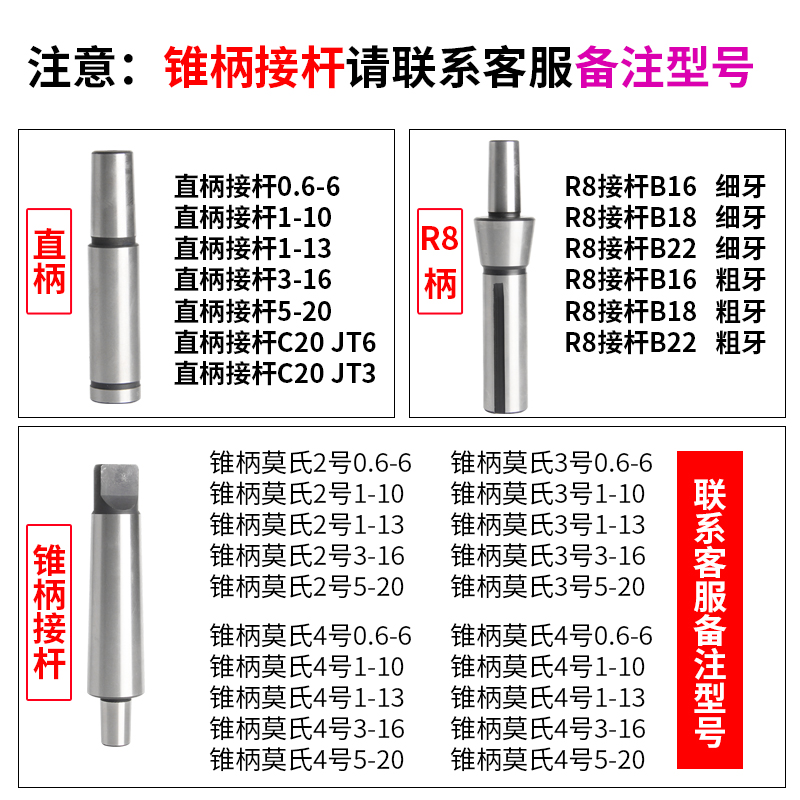 Straight shank connecting rod taper shank self-tightening drill chuck R8 drill rod 2-3-4 Morse C20-JT3-6-B16-18-22