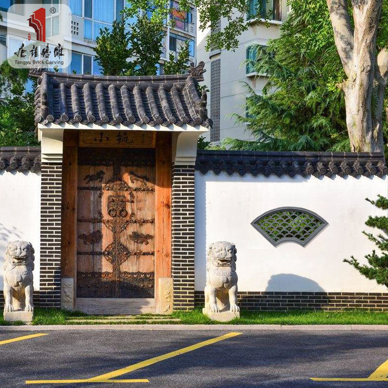 Tang-language antique brick carving sector hollowed-out flower window Chinese style courtyard emblems wall decoration through window cement flower lattice window brick