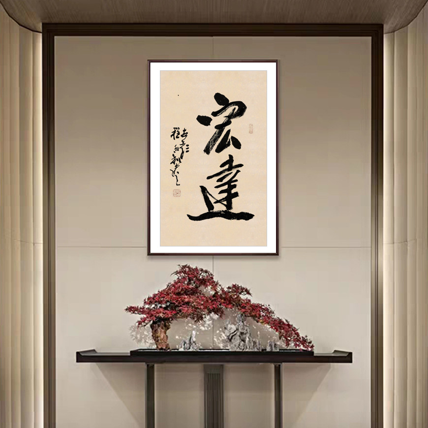 Cheng Yongli "Hongda" Famous Calligraphy of Calligraphy Real Traces Living Room Office Background Wall Hung Painting Decoration Auction