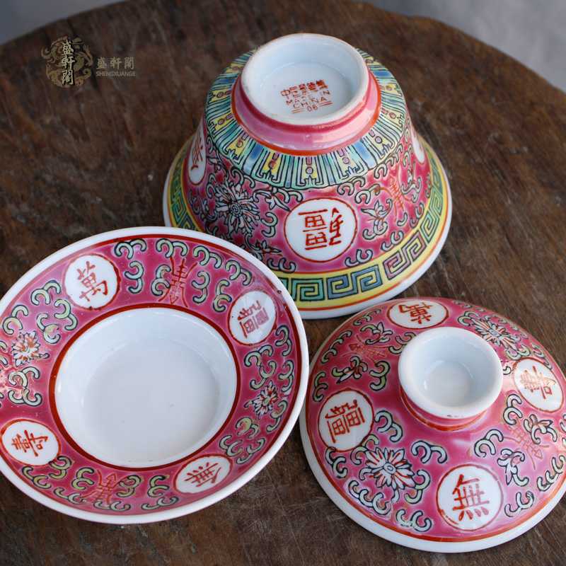 Factory goods Wanshou Wujiang Tea Cup Jingdezhen Ceramic Tea Set Red Collection Cultural Revolution Porcelain Set Sancai Bowl Gift