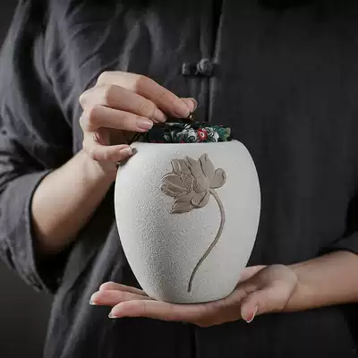 Tea cans, ceramic large sealed cans, household moisture-proof storage cans, coarse pottery, green black tea, Pu'er tea creative ornaments