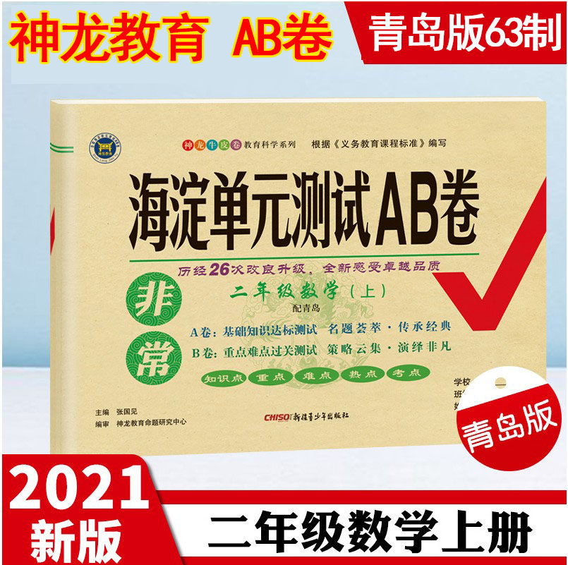 Autumn 2021 Very Haidian unit test AB volume 2 Second grade upper book Chinese teaching edition Mathematics Qingdao edition 63 system a total of 2 QD edition 2 second class synchronous test volume Mid-term final test papers