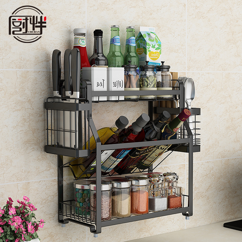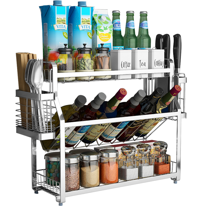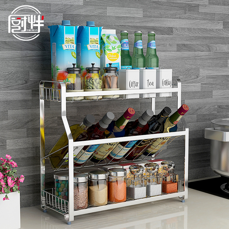 304 stainless steel kitchen shelf Seasoning seasoning tank rack punch-free wall wall kitchenware storage layer shelf
