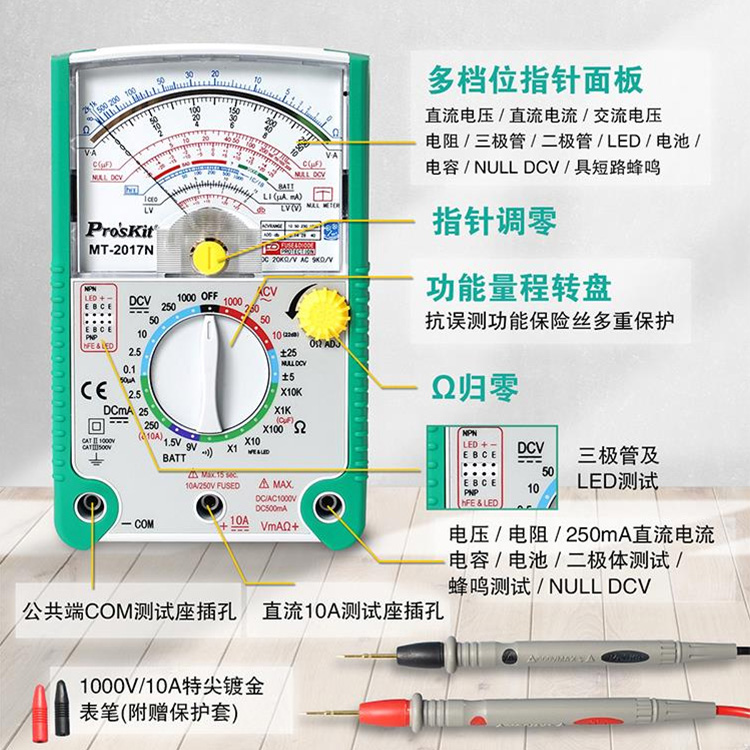 Taiwan Baogong MT-2017 pointer type universal meter intelligent burn-proof on-off beep high precision mechanical universal meter