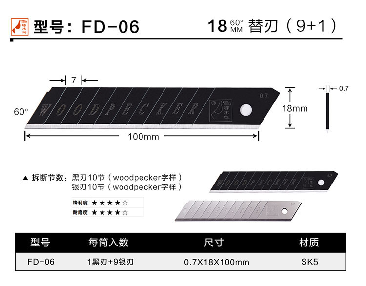 Woodpecker utility blade FD-06 large 18 wide heavy duty thickened 0 7 wallpaper beautiful sewing industrial cutting knife