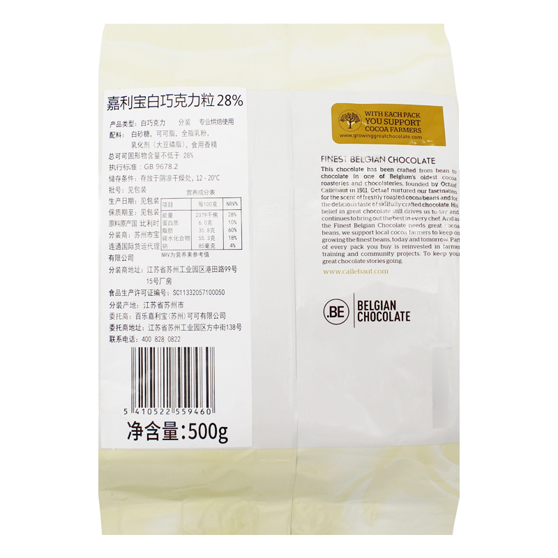 Belgium imports Carlibao white chocolate beans 28% Cocoa 500g Mount West Point Decorative Baking Raw Material