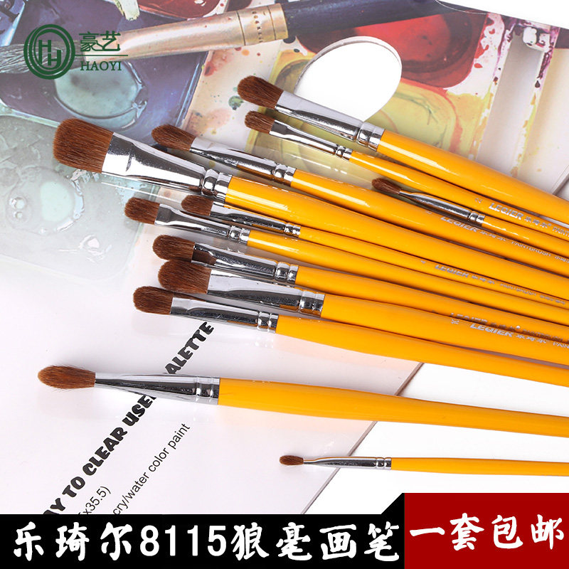 Le Qi R 8115 Water Powder Paintbrush Round Head Yellow Rod Wolf Milli Paintbrush Watercolor Propylene Brush Fine Art Painting Suit