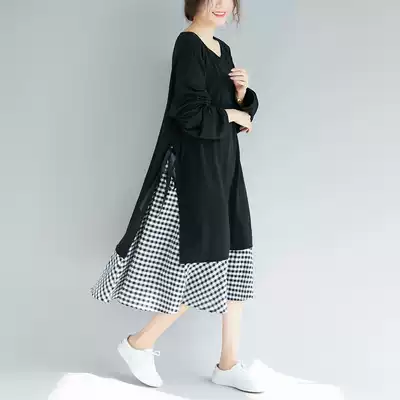 Extra large size pregnant women plus fat large size pregnant women autumn dress mm200 kg Korean skirt dress