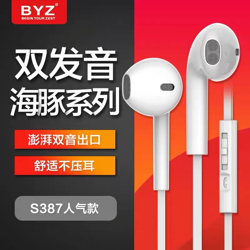 BYZ se387 headphones in the ear style Apple 6 Huawei oppor9 Phantom Xiaomi Vivo universal flat wire female Korean version