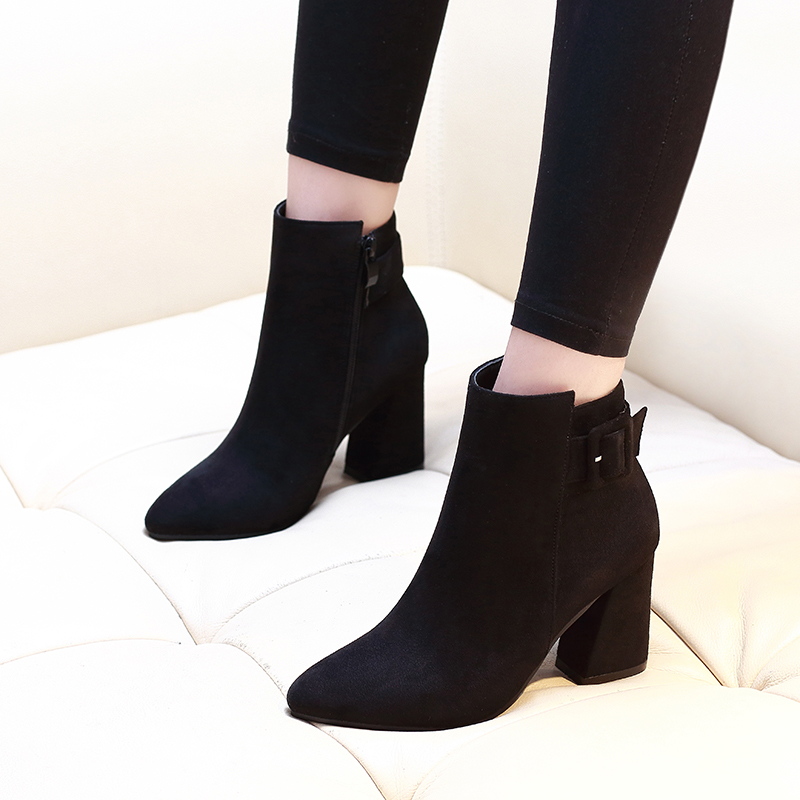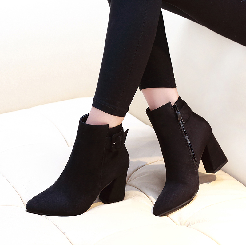 Short boots women's thick heel 2019 autumn and winter new high-heeled pointed toe Martin boots and bare boots all-match ankle boots single boots women's cotton shoes