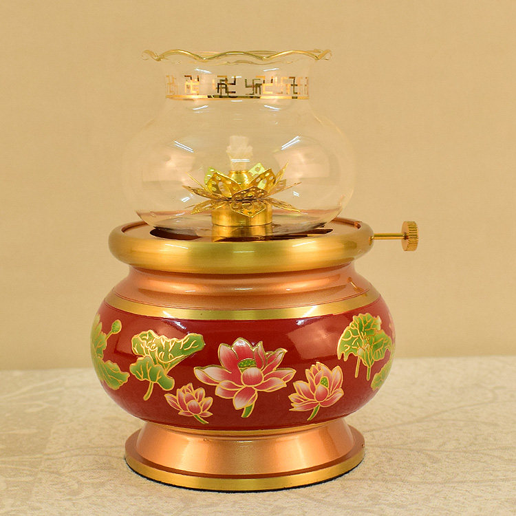 Copper oil lamps for Buddha lamps, long-bright lamps, wind-proof and fire-adjusting ghee lamps, lotus lamps in front of Buddha, Buddhist supplies, lucky oil lamps