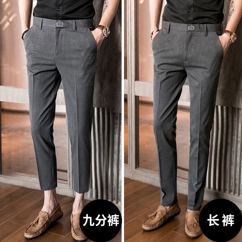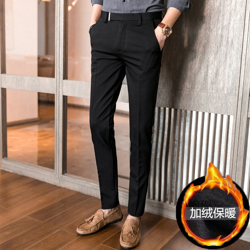 Men's Western pants autumn and winter plus suede thickened western dress pants Korean version with small feet 90% pants business suit casual pants