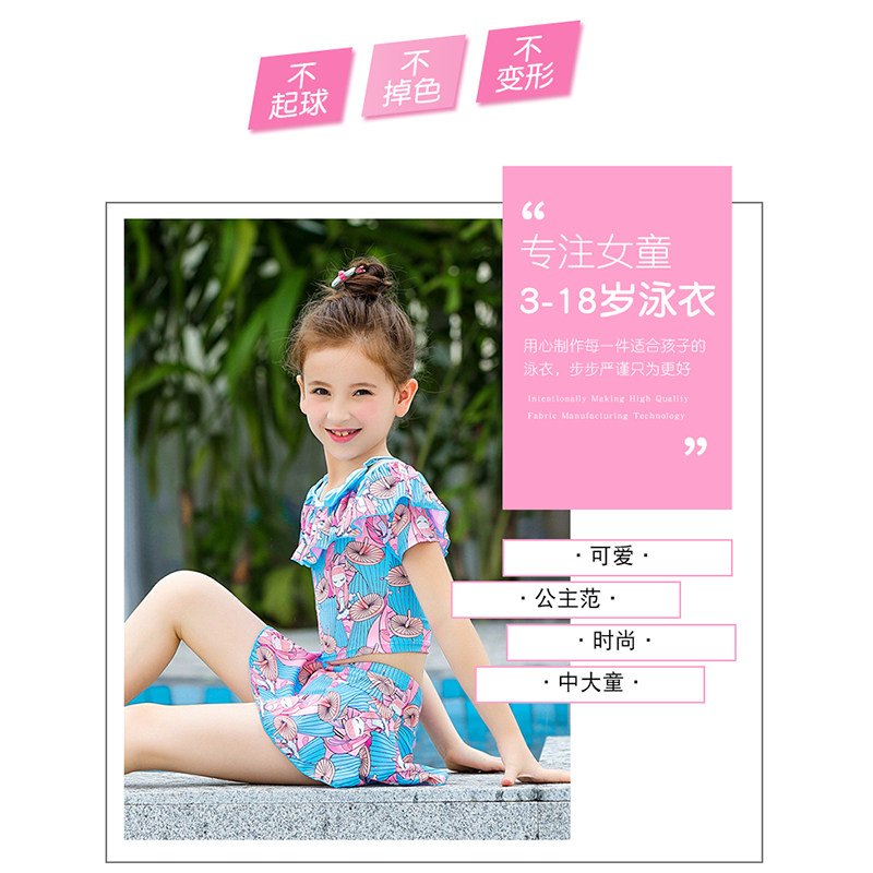 Girls Swimsuit Mid-size Child One-piece skirt style Student two-piece flat angle swimsuit Princess cute children swimsuit girl
