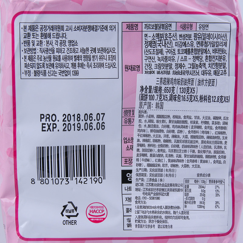 Sanyang Creamy Turkey Noodles Korea imported 130g*40 packs of new pink noodles with chicken flavor instant noodles whole box